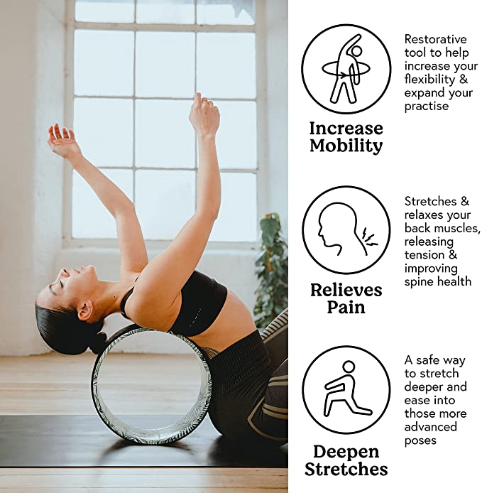 • Unlock deeper backbends, hip openers, and shoulder stretches with ease. The Yogi Bare Yoga Wheel helps you safely extend your range of motion and hold poses longer.
